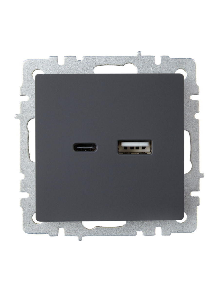 Зарядное устройство USB IEK, USB-A+C, 18Вт (Графит)