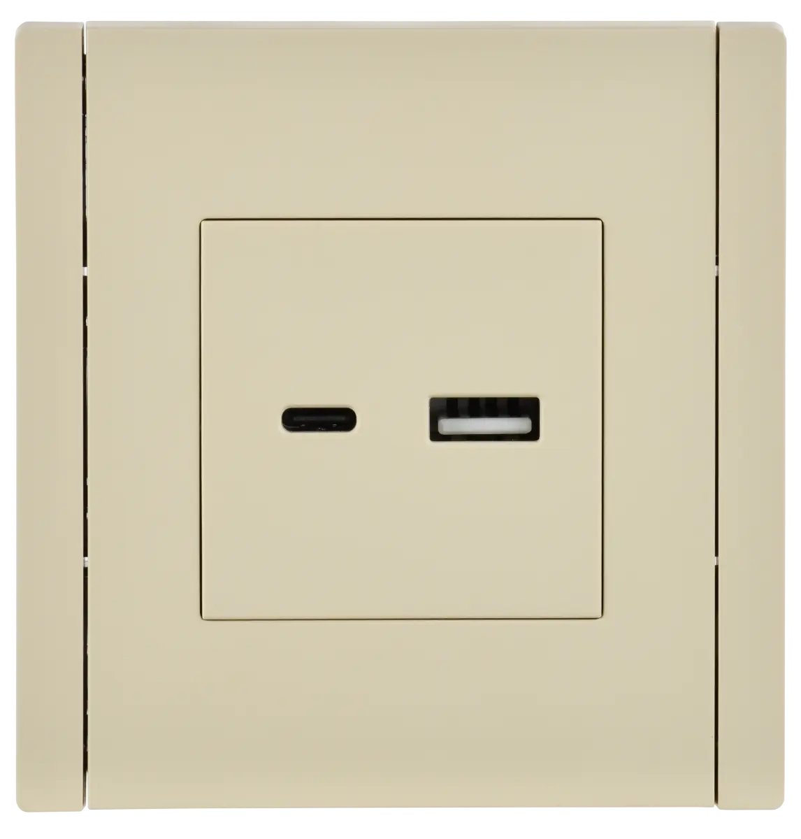 Зарядное устройство USB IEK, USB-A+C, 3.1A, 3.1A (ваниль)