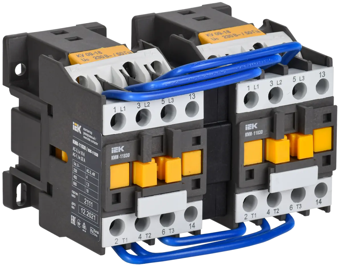 Контактор КМИ-11830 реверс 18А 230В/АС3 2НО IEK
