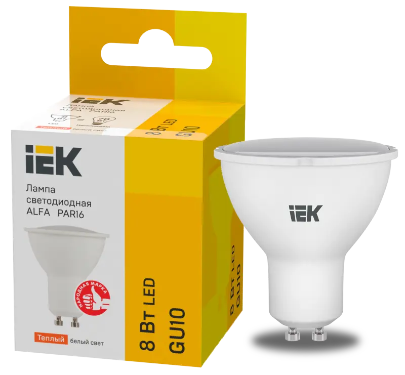 Лампа LED ALFA PAR16 софит 8Вт 230В 3000К GU10 (6шт)IEK