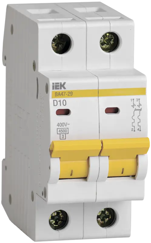 Автоматический выключатель IEK ВА47-29 - 2P - 10A - D - 4.5kA - 2M - 400В