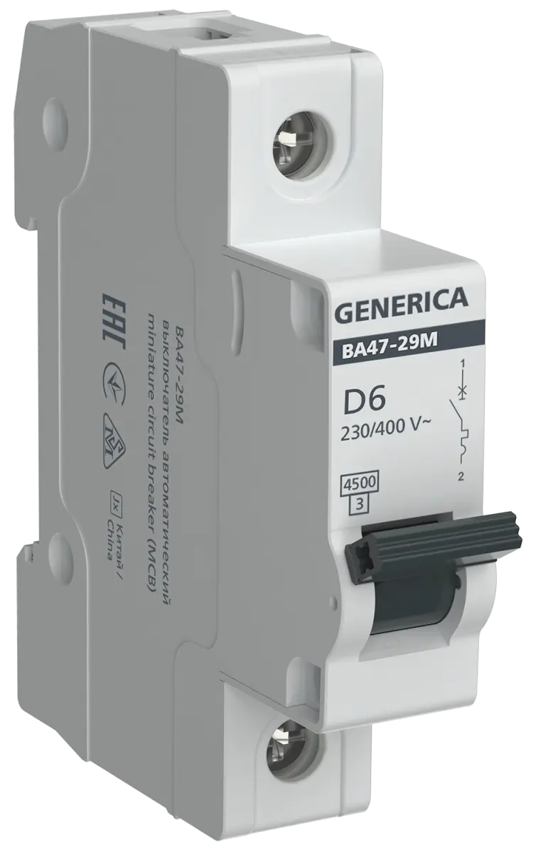 Автоматический выключатель IEK ВА47-29М GENERICA - 1P - 6A - D - 4.5kA - 1M - 400В