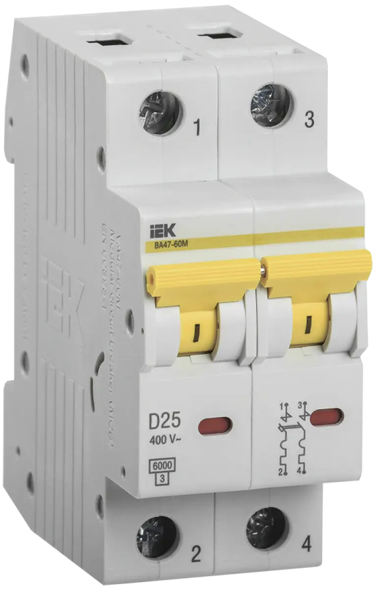 Автоматический выключатель IEK ВА47-60M - 2P - 25A - D - 6kA - 2M - 400В